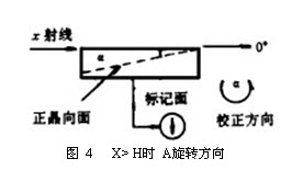 當(dāng) X< H時(shí), A為負(fù)值 ( 見圖 4) , 此時(shí) X= H A 應(yīng)按圖中所示旋轉(zhuǎn)方向來(lái)校正晶向。-